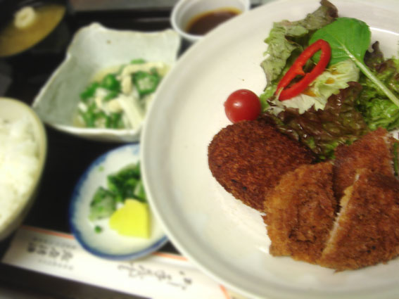 日替わりランチ(メイン、小鉢、みそ汁付)は¥800。